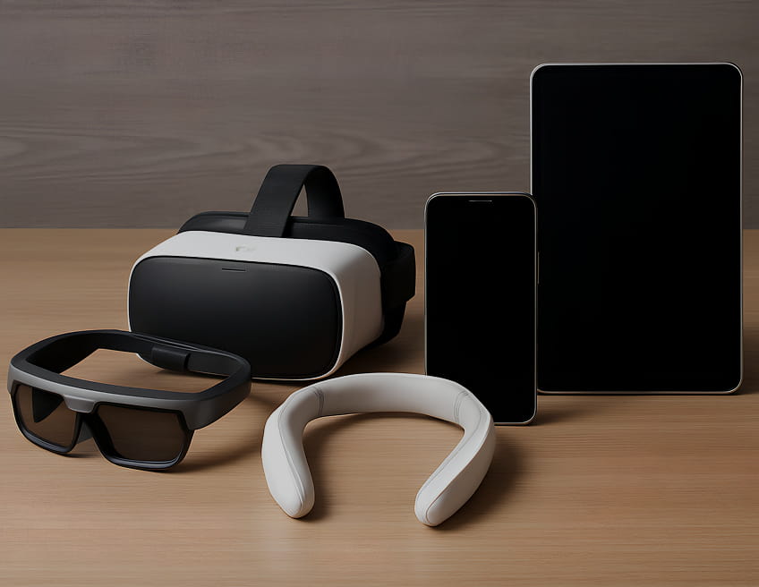 広く使っていただけるスマートフォンから、画像・映像を見られるARデバイス、気軽に利用できる首掛け型デバイスなど、幅広い端末に対応しています。